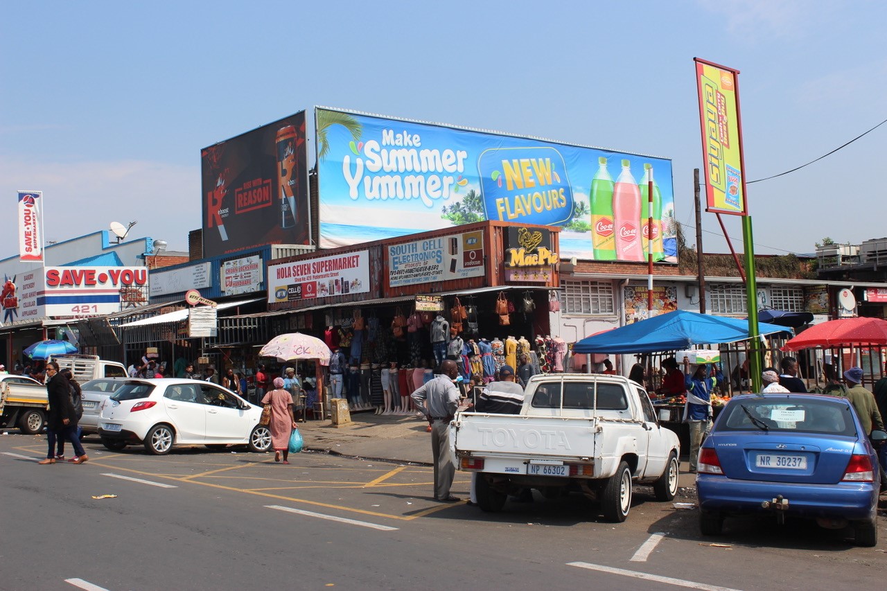 DESCRIPTION : Based next to the Siyaya Cash & Carry mall this is arguably one of the busiest streets in the Pietermaritzburg CBD. This prime location is directly opposite Rhino Cash & Carry and surrounded by more than 8 other large Cash & Carry’s (including Boxer, Save, Shoppers Mart, Checkout, Siyaya Cash & Carry, Price Rite Supermarket etc), the Imbali Taxi Rank, a KFC, Chesterfield Butchery, and two ATM’s.It is in prime view of 2-3 lanes of road with heavy slow moving traffic throughout the day (< 40kmph). Hundreds of informal and general traders together with thousands in foot traffic moving towards the taxi ranks and shops makes this an exceptional site for your target market. With the extraordinary large format panels and excellent location, these sites are “in your face” and cannot be missed.