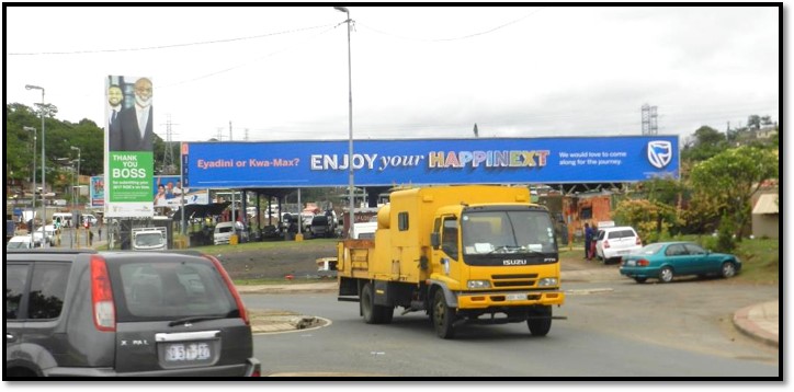DESCRIPTION : 168 m2 site mounted onto Umlazi Ezimbuzini Taxi Rank Roof structure & visible from a busy public transport route Prince Mcawyizeni Drive which is one of the major arterials into and out of Umlazi Township. The site is also surrounded by busy retail activity such as Kwa Jeena wholesale Centre. The site captures traffic from Umlazi Township, going towards Isipingo, Durban CBD & Mega City and visa versa.
