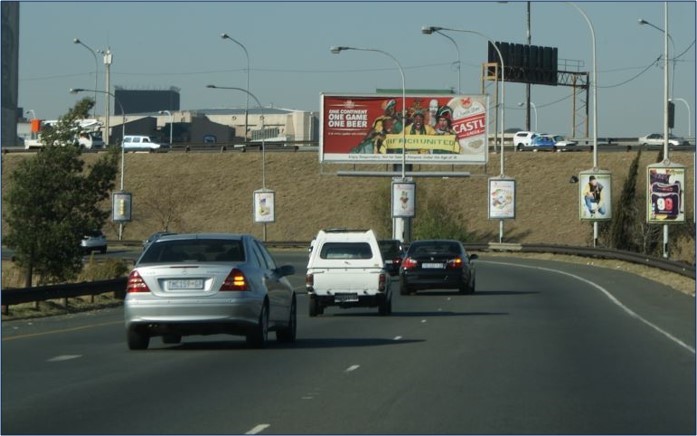 Traffic Direction: Facing traffic travelling from the M1 South & the M2 from Roodepoort travelling to the M1 North.