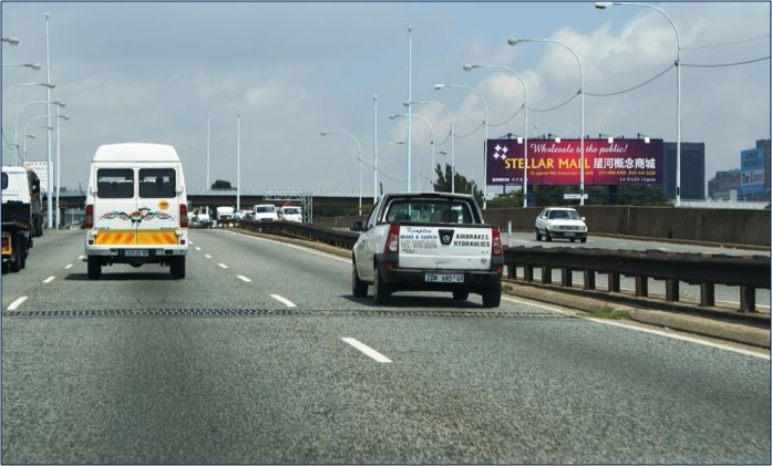 Traffic Direction: Facing traffic travelling from the East Rand to JHB CBD going towards the West Rand and Southern and Northern Suburbs.